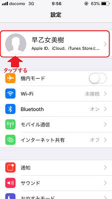 画面一番上のユーザー名を押します。
