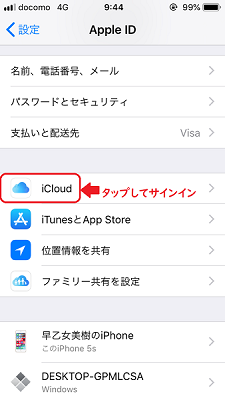 その後に「iCloud」を押します。