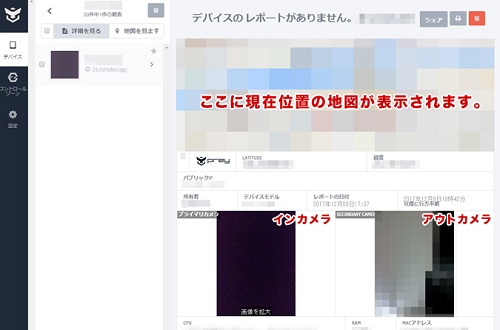 特にこのアプリのすごいところは、子供のスマホのカメラを制御し画像で子供の状態をチェック可能なこと。カメラはフロントカメラも背面カメラもどっちも操作可能です。