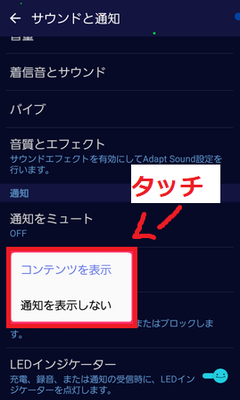 Androidの場合「設定」 から「サウンドと通知(音と通知)」 から「通知の管理(ロック画面の通知)」で通知を表示しないを押します。