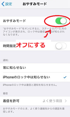通知を受け取るにはおやすみモードをオフにすればいいのです。しかし受け取りたくない場合はこれをオンにするといいと思います。