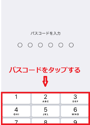 パスコードの記入画面になるので、iPhoneに登録している6桁数字のパスコードを記入します。