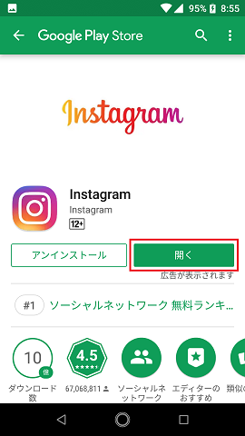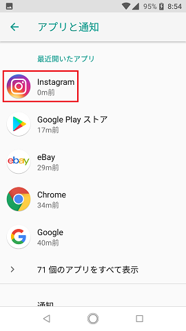 「Instagram」を押してインスタグラムのアプリ情報画面に行きます。
