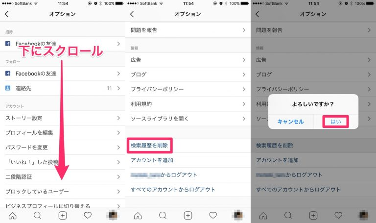 実は、Instagramをログアウトすると、自動的に検索履歴は消えてしまうんです。
